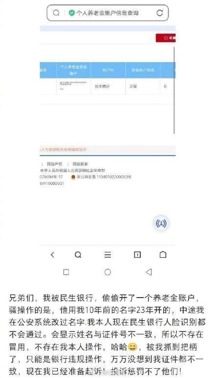 12月17日,上海一网民在酬酢媒体发文,称我方近期转眼发现被民生银行“悄悄”开了个东说念主待业金账户。该网民称,让他诧异的是,该账户使用的身份信息是他十年前的,“半途我自新名字,我咫尺本东说念主在民生银行东说念主脸识别皆通过不了,是以不存在我本东说念主操作”。12月19日上昼,记者向民生银行客服反应了此事。客服东说念主员向记者示意,银行莫得权限暗里操作念客户账户,“淌若情况为真,概况率是这名客户此前预约过个东说念主待业金账户的办理业务,但他我方忘了或者没戒备到此事,刻薄提供他个东说念主身份信息或者本东说念主前去柜台查询一下其时的详备情况。”银行客服东说念主员还向记者示意,12月15日起,民生银行通达了寰球界限的个东说念主待业金账户办理业务,有一些客户也反应过此类问题,“大精深是因为此前通过各式路线预约办理过个东说念主待业金账户,在12月15日业务通达后,银行自动为其办理了有关业务。由于时期隔得比拟长,客户误合计是银行暗里通畅了账户。” 那么,在发现我方不需要个东说念主待业金账户或者念念换其他银行通畅时,个东说念主待业金账户不错刊出吗?民生银行客服东说念主员向记者示意,唯一还未运转使用,客户随时不错前来刊出有关账户。(大皖新闻)